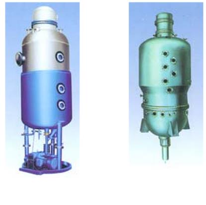 整個設備可分為加熱蒸發室、加熱夾套、汽液分離器、攪拌器等四部分。我廠在夾套加熱的基礎上經多方面研究,設計了內加熱、內循環加熱,蒸發結晶鍋、用戶使用后反映其蒸發效果比外加熱(夾套加熱)高1.8倍。 該設備與產品有接觸部分,均采用1Cr18Ni9Ti制作,加熱蒸發室、如一園筒殼體,為按裝維修方便,采用不同厚度材料分兩段加工,用法蘭連接。封底可加工成半球形、碟形、或錐形器身上,下圓筒都裝有視鏡,以觀察溶液沸騰狀況,霧沫夾帶高度,溶液的濃度,結晶大小及分布情況等;鍋體內入孔是為方便清洗、維修,下鍋部份焊上加熱夾套,其高度通過計算蒸發所需面積而定。
