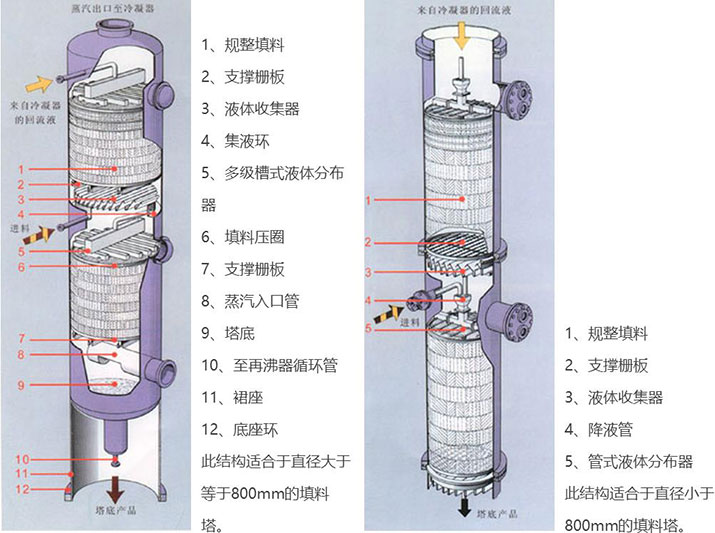 規整填料塔的分離性能取決于內件,即填料、分布器、收集器等。同時也取決于許多參數,如氣體負荷、液體負荷、物料性質、操作壓力、填料濕潤性能和液體分布不均勻等等。至今不能由填料的幾何形狀來精確計算塔的分離性能,需要通過填料塔的理論和不同條件下通過試驗塔來測定準確數據。用戶可根據資料以一級近似程度確定塔的尺寸和需要的填料高度。如果需要經濟、合理的結構形式,我廠愿與用戶密切合作。